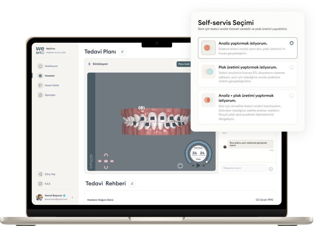 WeOrto, bağımsız, hasta odaklı ve esnek çalışmak isteyen ortodontistler için tasarlanmış bir çözüm sunar.