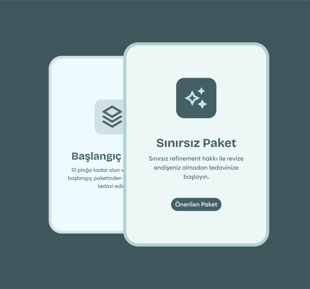 Üretim ve plak seçim detaylarıyla uğraşmak istemiyorsanız, size özel olarak hazırlanmış kapsamlı tedavi paketlerimizi kullanın! Başlangıçtan bitişe kadar tedavi sürecini garanti eden refinement adımlarını da kapsayan çözümlerimizle vakalarınızı zahmetsizce yönetin.