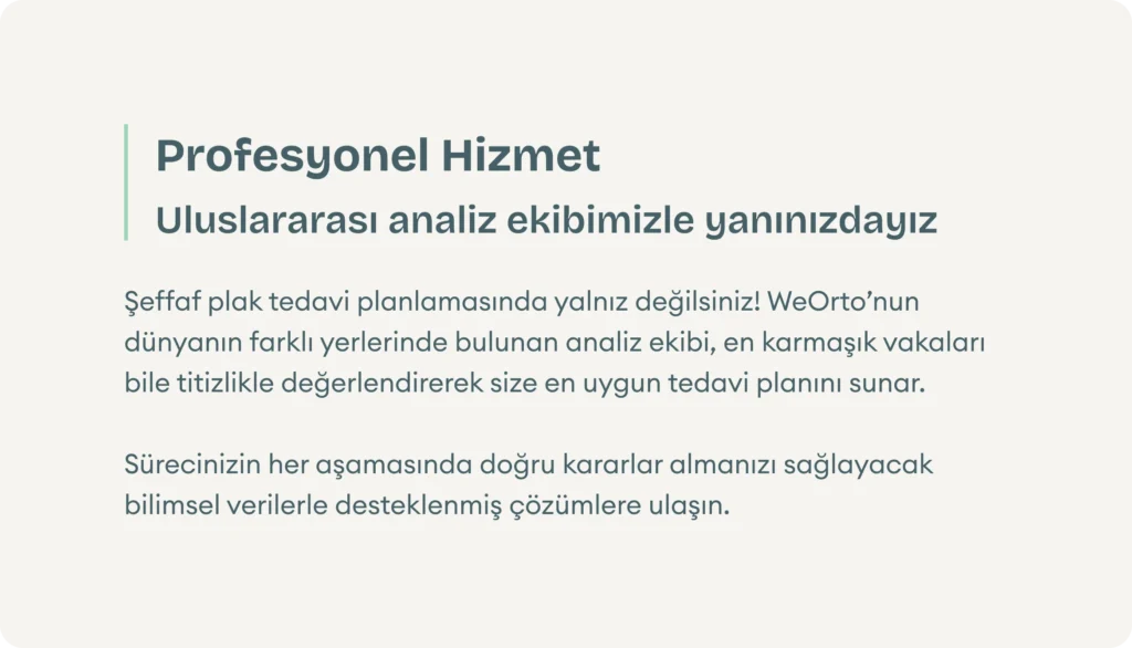 Deneyimli analiz ekibimiz ve ortodontist desteğimizle her aşamada yanınızdayız.